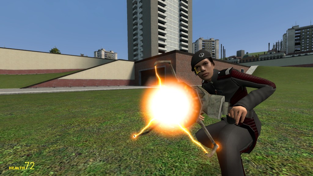 Playermodel arms were also pretty painless to author once I got past the initial frustration, (I had made a typo in the lua that wasn’t drawing the model initially. (Remember to explicitly write ‘.mdl’ when referring to models in lua.)) The resource examples for player arms attached to the garrysmod wiki include a lot of optional features like baked procedural bones and a truncated skeleton, but I found that exporting with a full skeleton worked fine, and although nice, learning the process to bake procedural helper bones (like the wrist, in this case) would add a great deal of work for very little improvement. Ideally, it’d be best for me to create or re-choose high resolution hands, texture those, make a high-poly sculpt of the forward arms and use that for the best quality. The people that would appreciate viewmodel hands, however, aren’t going to care if they’re 5 poorly textured polygons, just that they exist to the point where I can say “…and playermodel hands!”. Using the hands I made for the project gives enough to keep immersion, and is still way further then most people go for projects like this. More importantly, it’ll mean less comments complaining about the lack of it. A few hours of work before release could have potentially saved me the same amount of time responding to complaints.