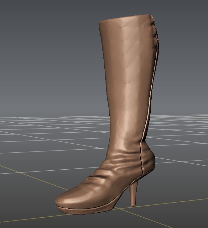 I did do a bit of sculpting on this project, the female boots were exported to mudbox and turned into a high poly sculpt. The seams on the boots were UV restrictive, and since they are basically black, creating the diffuse using a sculpt ambient occlusion, supplemented with Photoshop, seemed fair game. I did the same with the female gloves for the same reasons as well.