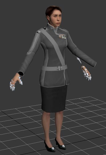 Given the post-v3 work, I still felt that the Mass Effect 2 tunics would be a good choice. I also had nebulous ideas about legwear; pants from Kane and Lynch a skirt from Jesse in Dead Rising, and some nice boots from somewhere. I wanted it to be valve biped compliant and use the enhanced citizen skeleton and physics. Although this would prove to be a challenge given that my base model used a custom skeleton, I saw it as a good opportunity to practice rigging. This would also insure that I could source hands from the enhanced citizens (I don’t want to practice that much).