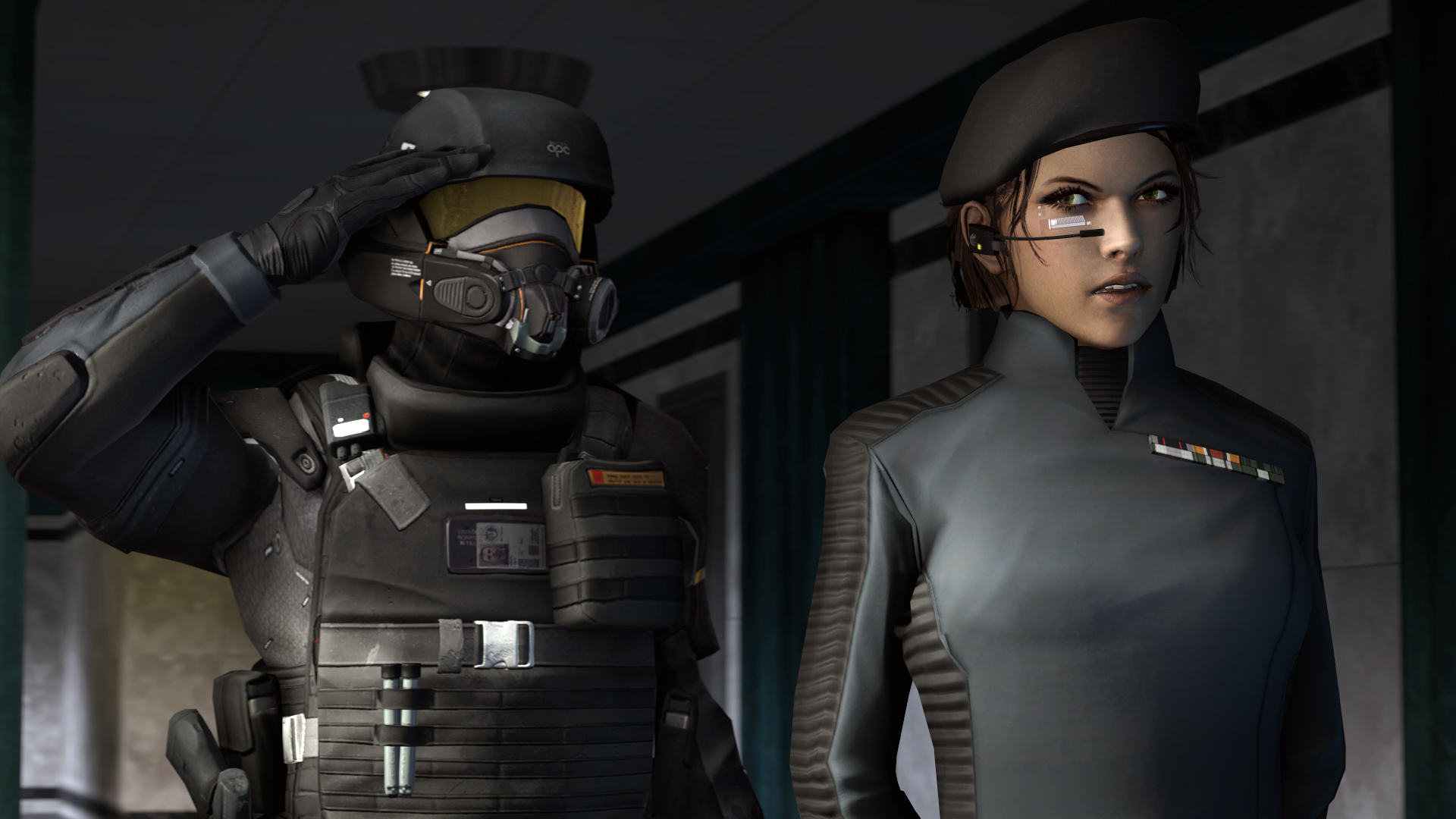 We added a retextured helmet from halo, another mainstay of sci-fi props in the custom model toybox on most peoples’ computers. We added berets with badges from mirror’s edge. When completed, the new version fit the role of ‘model amalgamation’ from several games. For this version, I convinced another friend of mine, Nirrti, to join in and model out a shoulderboard for ranks. All in all, it was a solid release pulling from 8 base models over 4 games plus custom work. It also opened the gateway to the most recent version of the combine officers, a paired down version with new textures and a more HL2 theme.