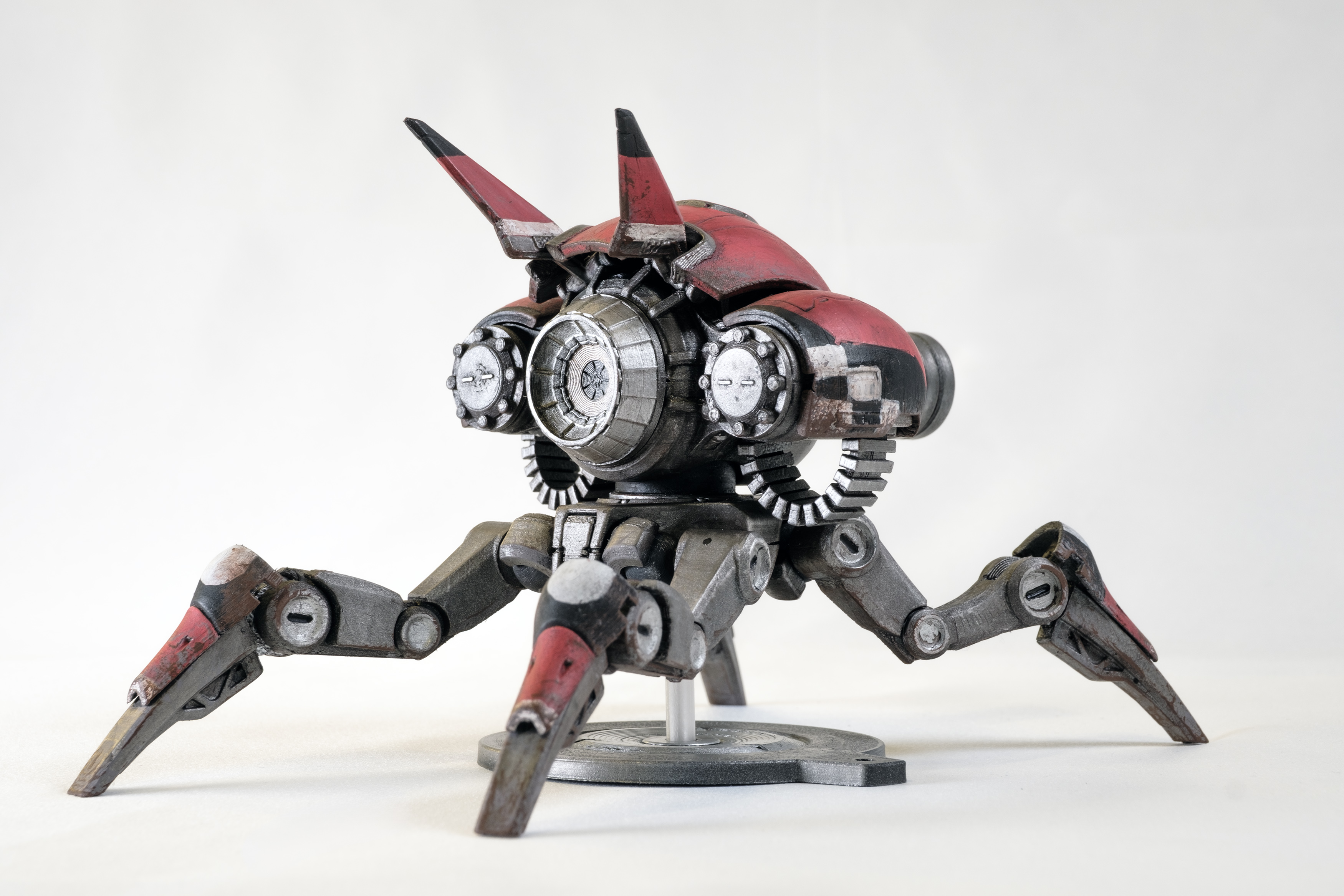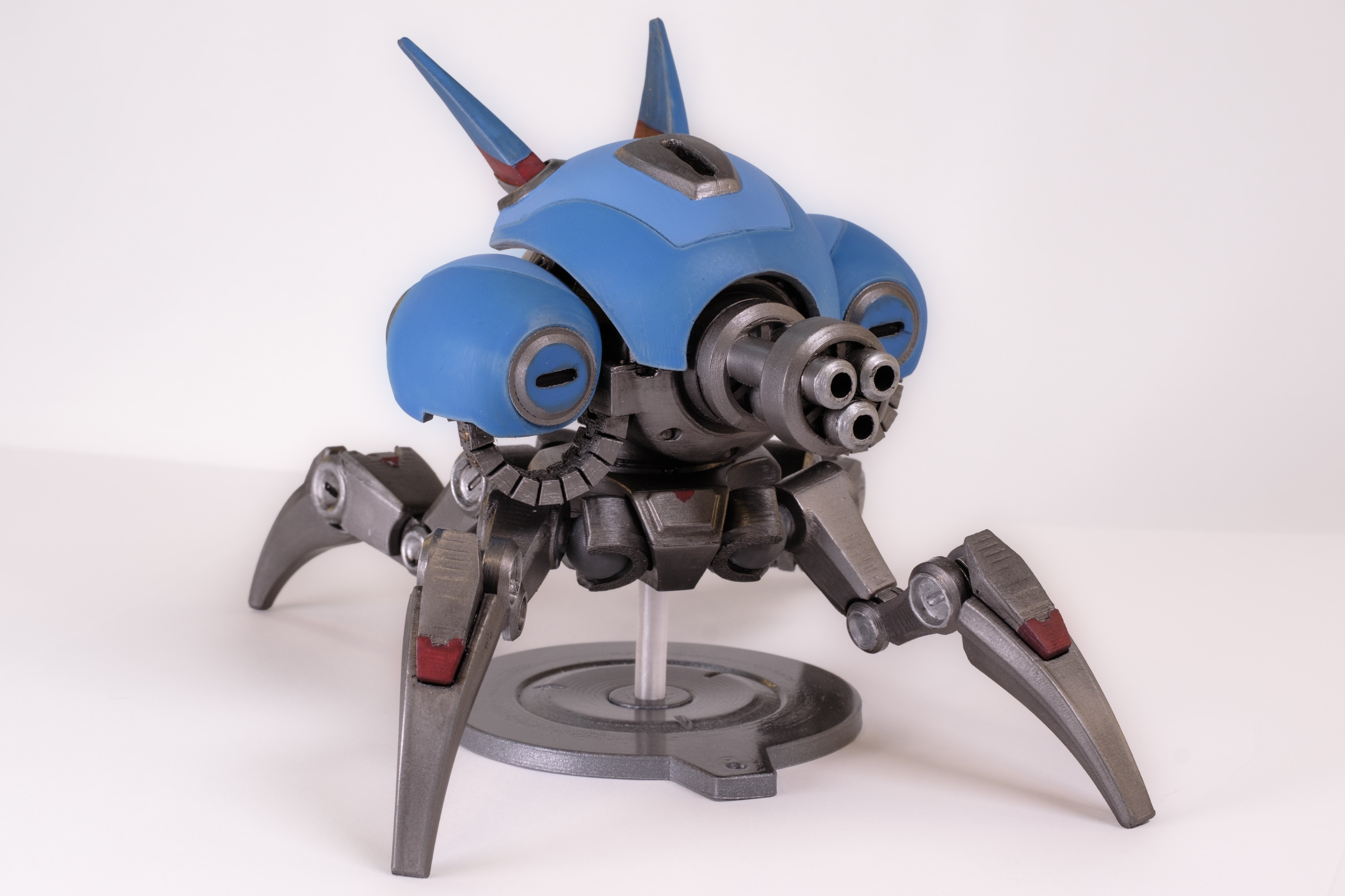 Torso rotation and shell removal are the big ‘wow’ elements, and being able to rotate the antennas are kinda neat – doing it again, I’d likely do more fixed keyed connections for the legs to get a more consistent pose, but keep the general number of parts the same since this approach did make painting easier.
