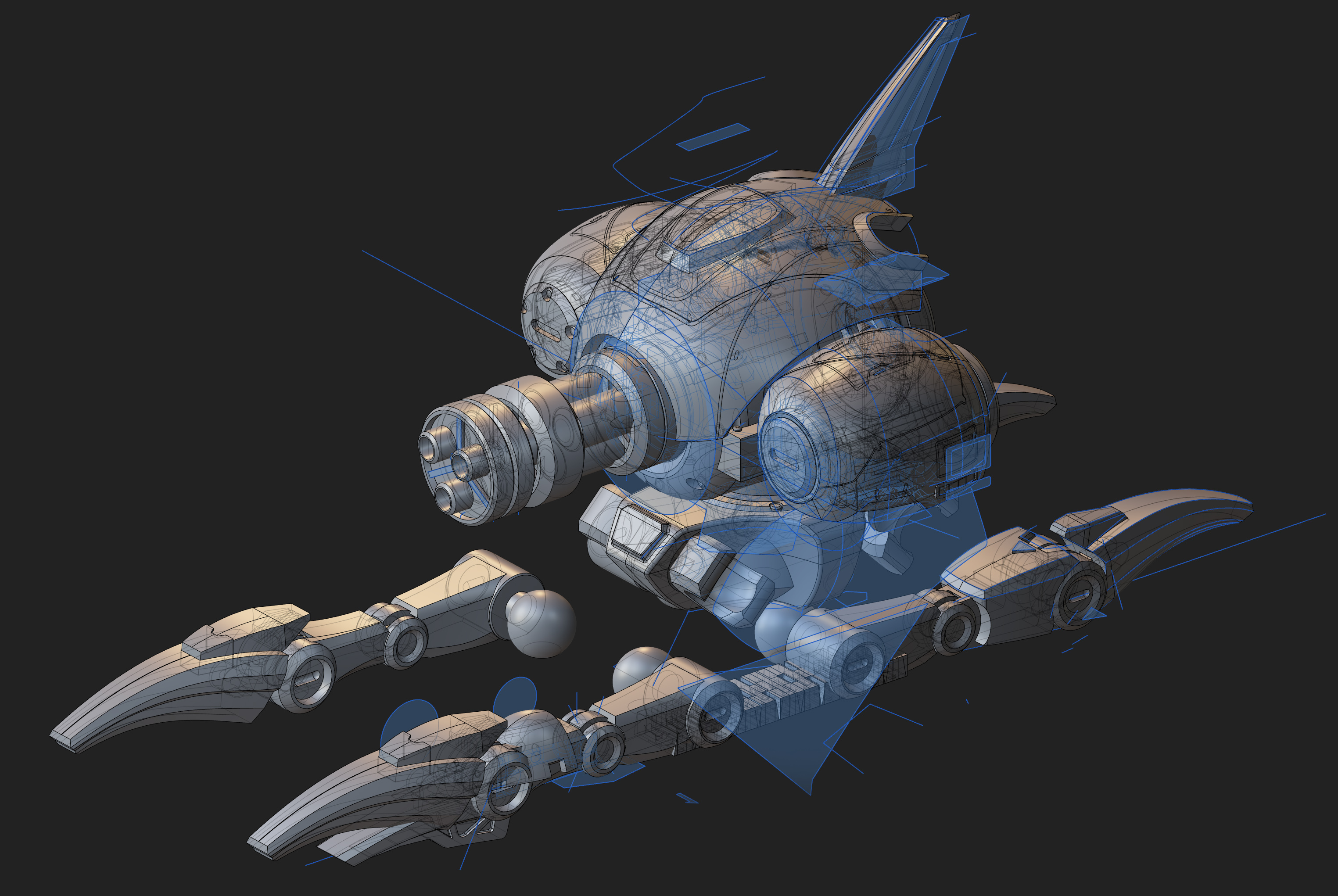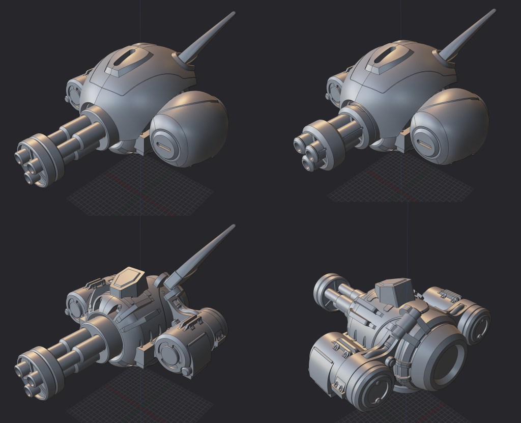 I believed re-interpreting the Gunbot purely in Plasticity would be an excellent modeling exercise to do in my spare time to help improve my proficiency with the tool.