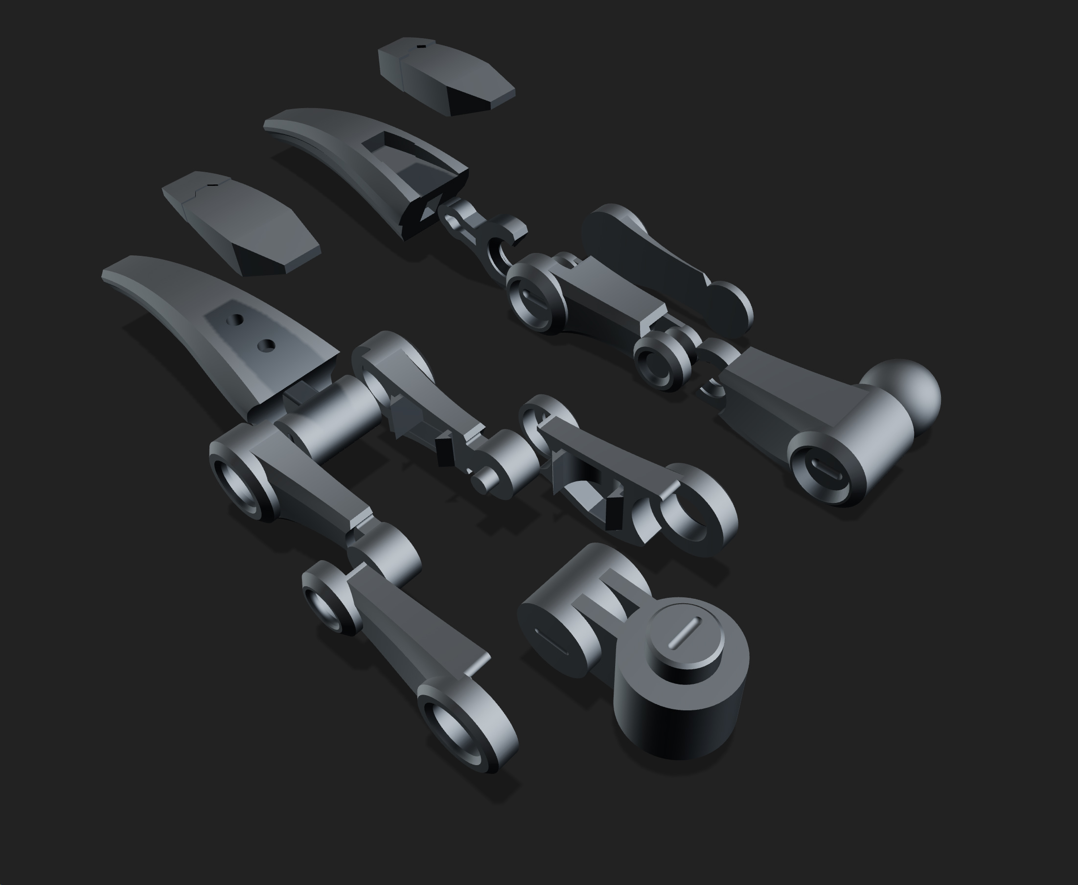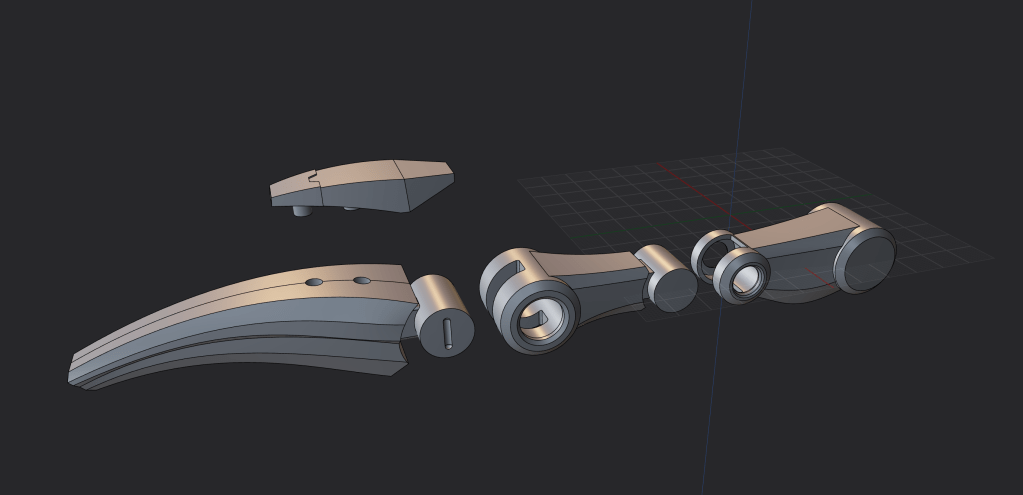 After a few weeks, I got some great looking prints of some leg parts, but they sanded weird and snapped apart when trying to assemble. It didn’t help that I missed a few booleans and left absolutely no tolerances for anything.