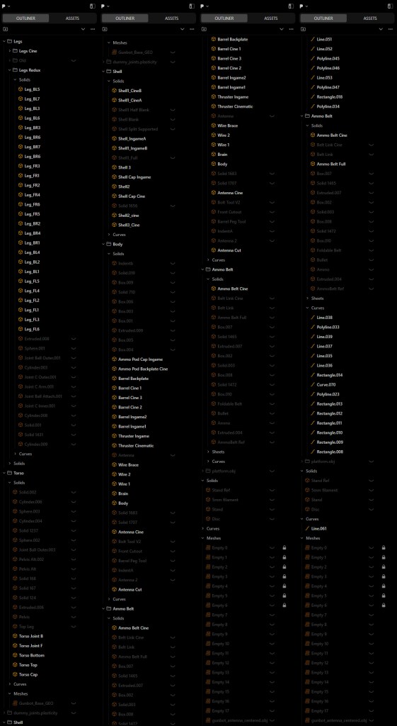While it was a brand new model, it did serve as a simple fresh start that lets me get warmed up to the process without getting caught up in the intractable unsolved problems I was currently suck on with the Gunbot’s articulation.