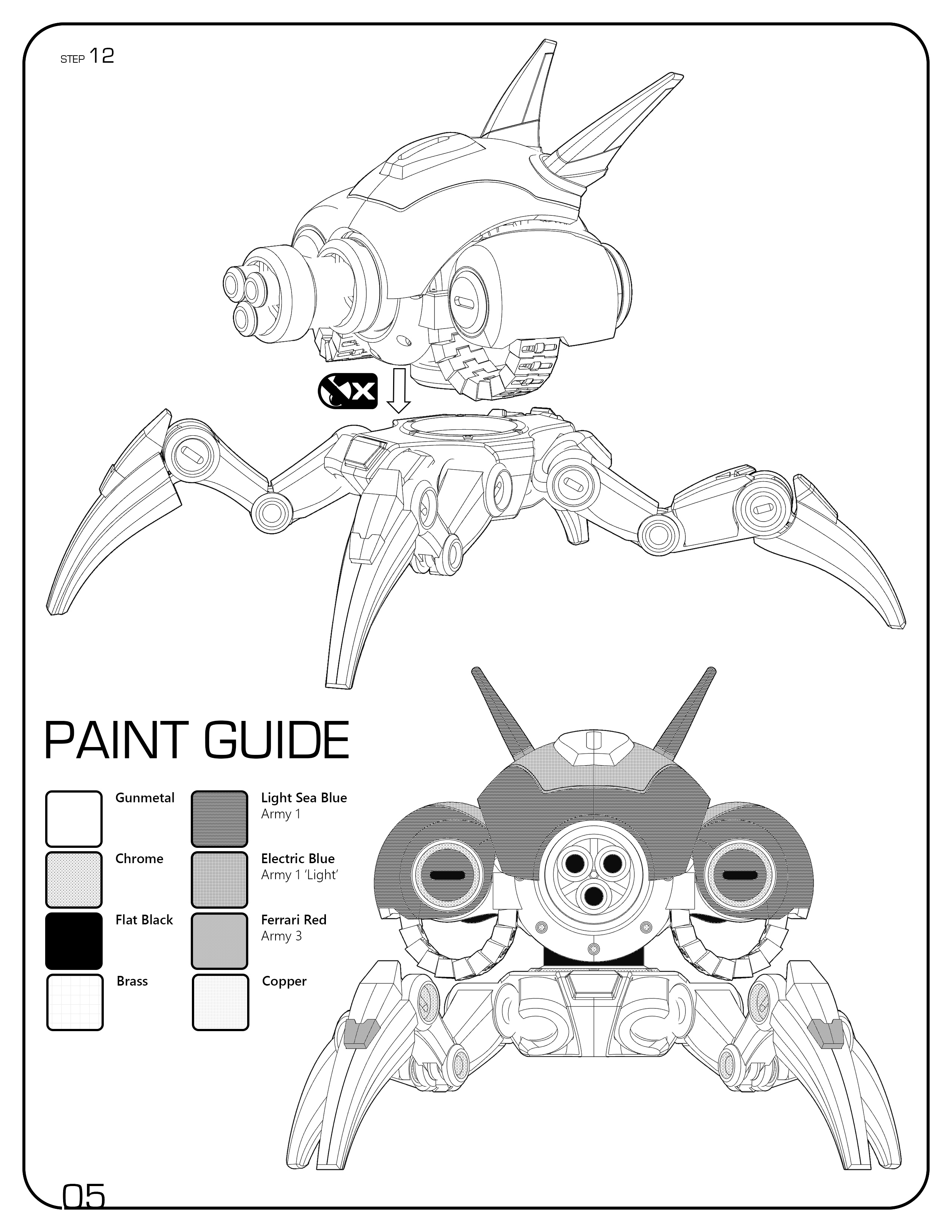 Second, and more important, the cinematic model isn’t the mainline gunbot that’s actually in the box. While there are parts that let you make something close, this design is really built around the ingame model we had – I intentionally made the instruction manual with the ingame parts, the cinematic elements are a ‘bonus’ and I wanted to reflect that.